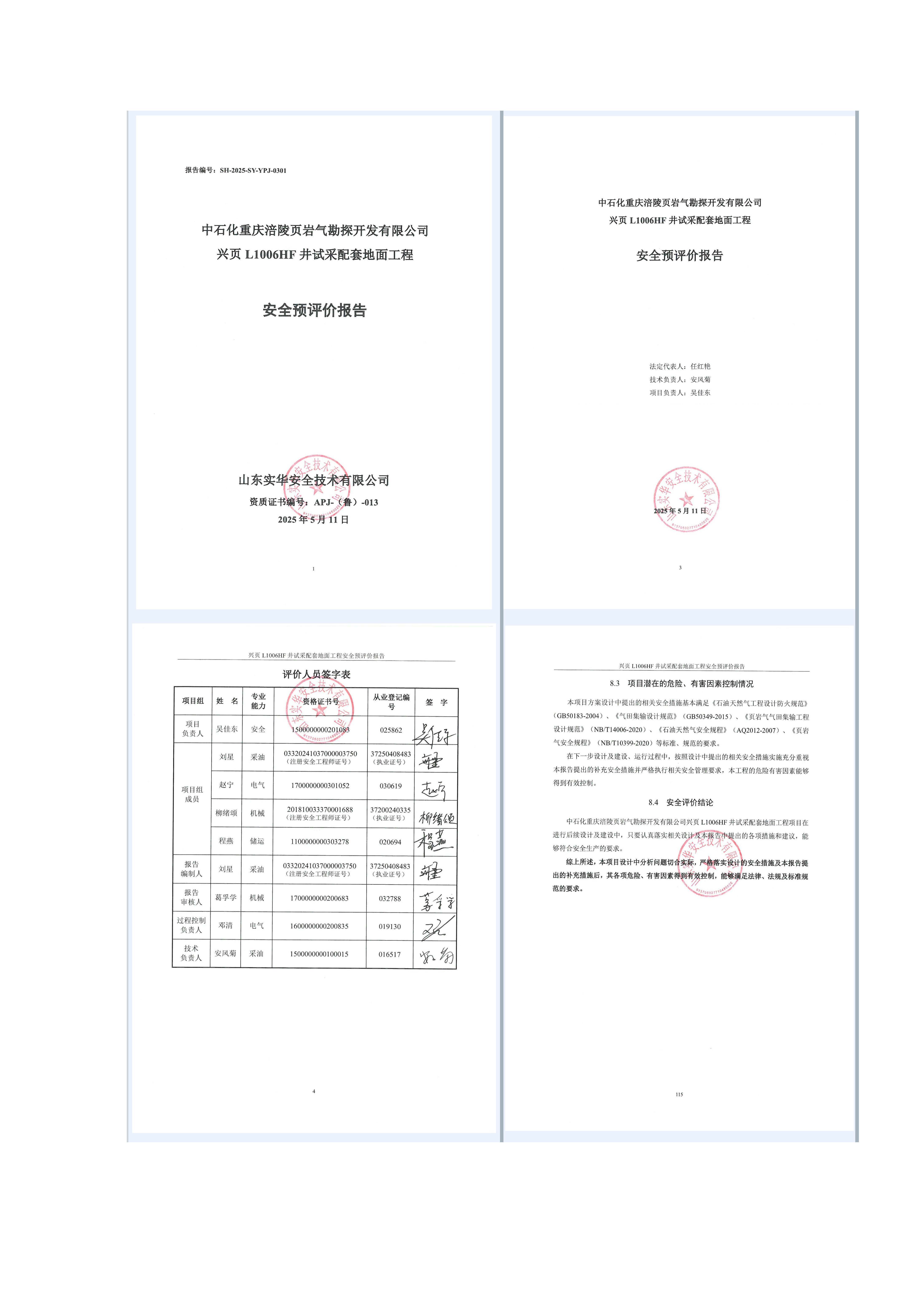 中石化重慶涪陵頁巖氣勘探開發(fā)有限公司興頁L1006HF井試采配套地面工程安全預(yù)評價