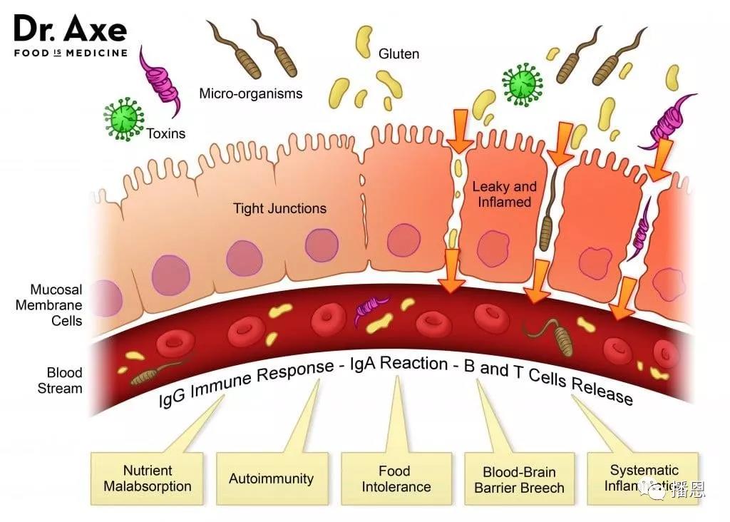 或許有人會(huì)感嘆,“哇,腸道實(shí)在是太強(qiáng)大了!”,但事實(shí)卻恰恰相反。如圖2,致病微生物(細(xì)菌或病毒)、毒素和抗原會(huì)隨飲水或飼料進(jìn)入動(dòng)物腸道,在這三者的共同作用下腸道上皮細(xì)胞被損害,如腸道上皮細(xì)胞間的緊密連接受損而出現(xiàn)空隙,致病微生物、毒素和抗原就會(huì)通過(guò)空隙侵襲到血液當(dāng)中,從而引起動(dòng)物發(fā)病。