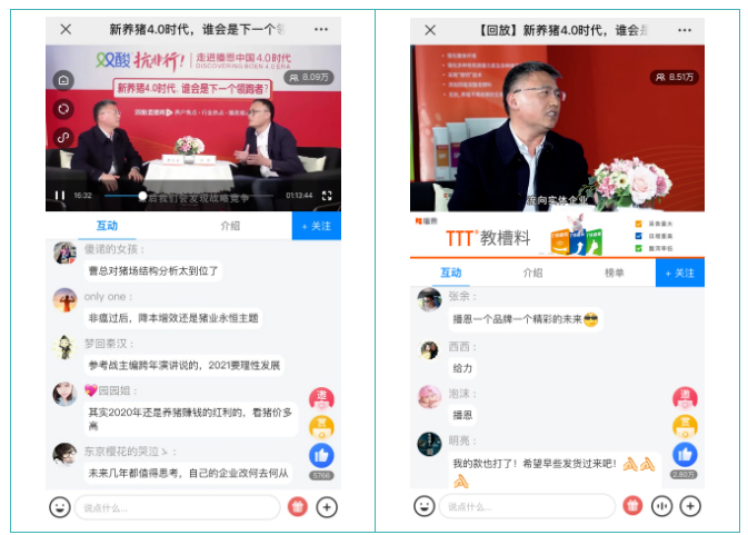 此次直播,獲得愛豬網(wǎng)、中國養(yǎng)豬網(wǎng)、豬易傳媒、牧業(yè)前沿、賽爾傳媒、播恩live六大媒體進(jìn)行同步轉(zhuǎn)播,更吸引了36萬+人次的駐足觀看。直播間網(wǎng)友紛紛表示此次直播收獲很多,也在2021年的預(yù)測與展望中摸索到了自己的致富經(jīng)。